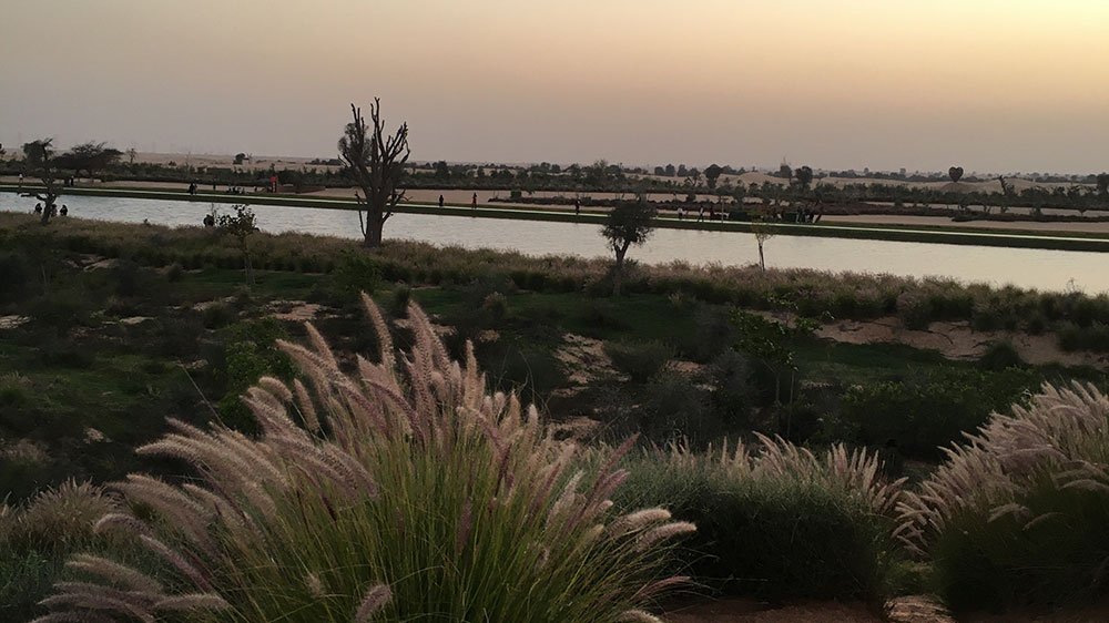 There was a nice shallow area that you could walk across and look at the huge koi that swam around the lake, there were also some ducks and swans around. For something that is located in the middle of the desert, I expected to see sand and lots of it with a lake in the middle a lot like the rest of Qudra lakes but this was something else, it was green, lush and full of life and beauty. The area was bigger than we expected and we only got through half of it before the sun started to set and we decided it was better to head back across the water towards the parking before it got completely dark.